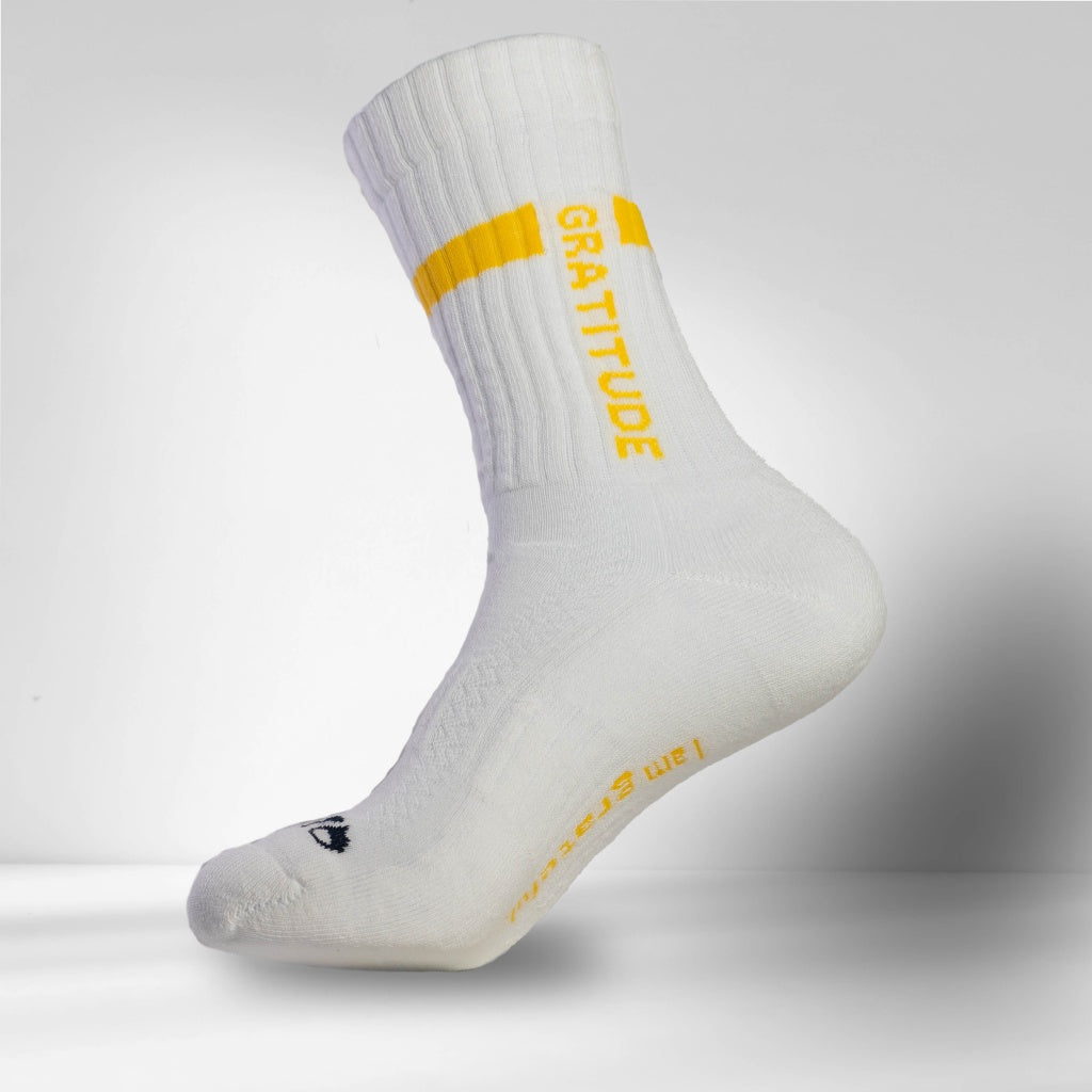 Ob beim Training oder in der Freizeit – diese Socken geben dir Halt, Energie und erinnern dich daran: Stärke beginnt bei dir. Und wenn du spürst, dass der Blick fürs Wesentliche verloren geht, wirkt dieser Impuls genau da, wo du ihn brauchst: beim entspannten Kaffee im Urlaub, beim Spaziergang in der Natur oder bei einem tollen Moment mit jemandem, der dir viel bedeutet.