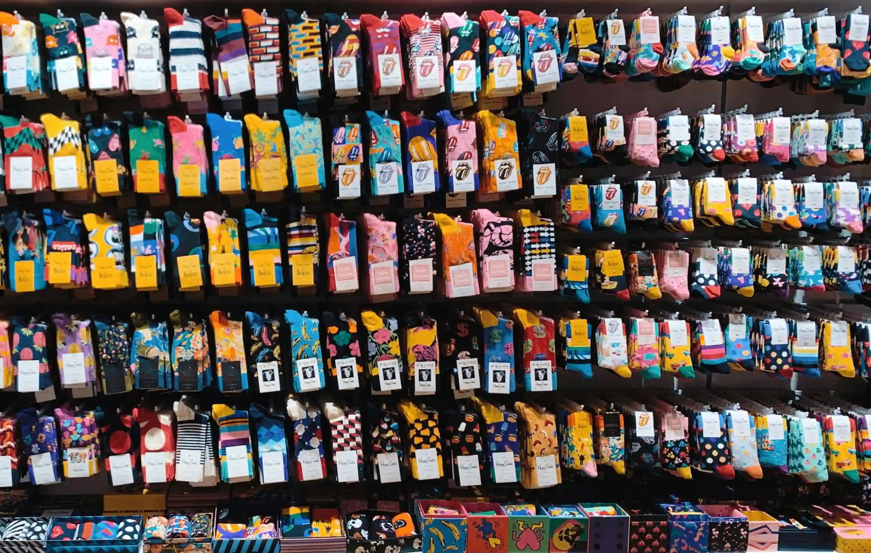 In Australien stand ich plötzlich vor einer gigantischen Sockenwand: hunderte Designs, knallige Farben – und kein einziger Satz auf den Socken, der aufbaute. Stattdessen Zynismus, Resignation, kleine Sticheleien, humorvoll getarnt - sowas wie „Same shit, different day“.
